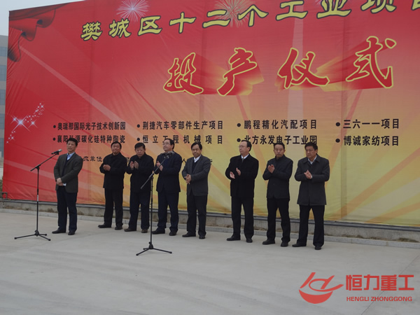恒立重工一期工業(yè)項(xiàng)目投產(chǎn)儀式 項(xiàng)目位于樊城區(qū)萬州大道南側(cè),占地64母,總投資1.5億元,由湖北恒立工程機(jī)械有限公司投資建設(shè),湖北恒立工程機(jī)械有限公司是一家集科研開發(fā)、生產(chǎn)經(jīng)營于一體的科技型工業(yè)有限公司,公司資產(chǎn)總值8000萬,公司主要專業(yè)研制開發(fā)生產(chǎn)