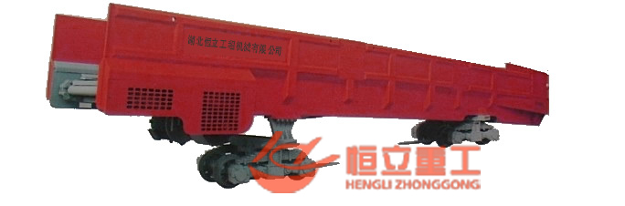 梭式礦車式地下煤礦巖巷、非煤礦主巷、非煤礦主巷掘進時的高效出渣設備,同時也可作為大型儲矸設備,現(xiàn)已有從4-40立方等多個規(guī)格。它主要由裝有運輸機的槽形車廂和行走部分組成,車體放在兩個轉(zhuǎn)向架上,在車廂底板裝有刮板運輸機,采用電動動力將矸石從車廂的裝渣端裝人,連續(xù)轉(zhuǎn)動刮板運輸機自動將矸石移動到卸載端,使整個礦車裝滿,開啟運輸機即可將矸石自動卸下。